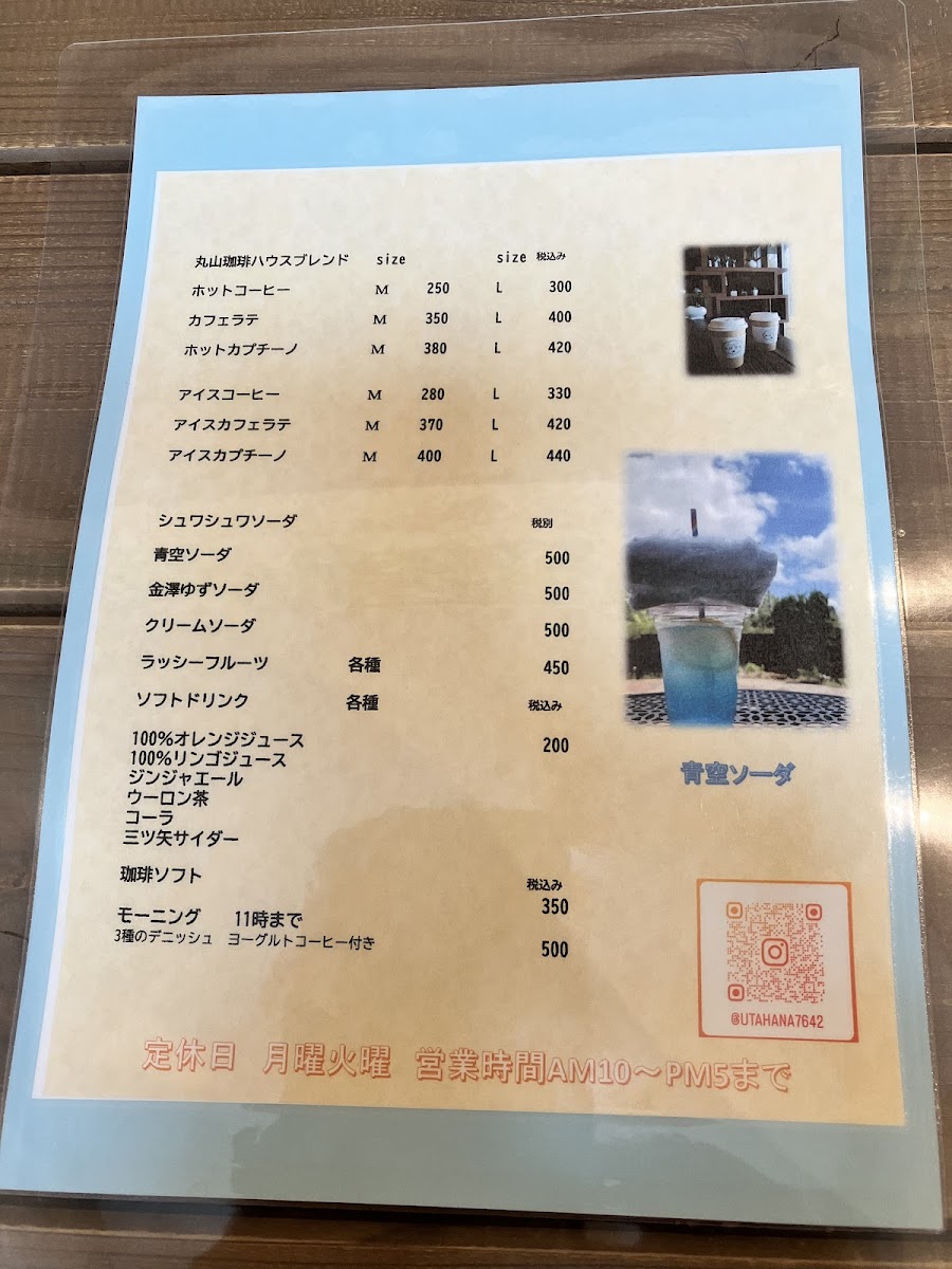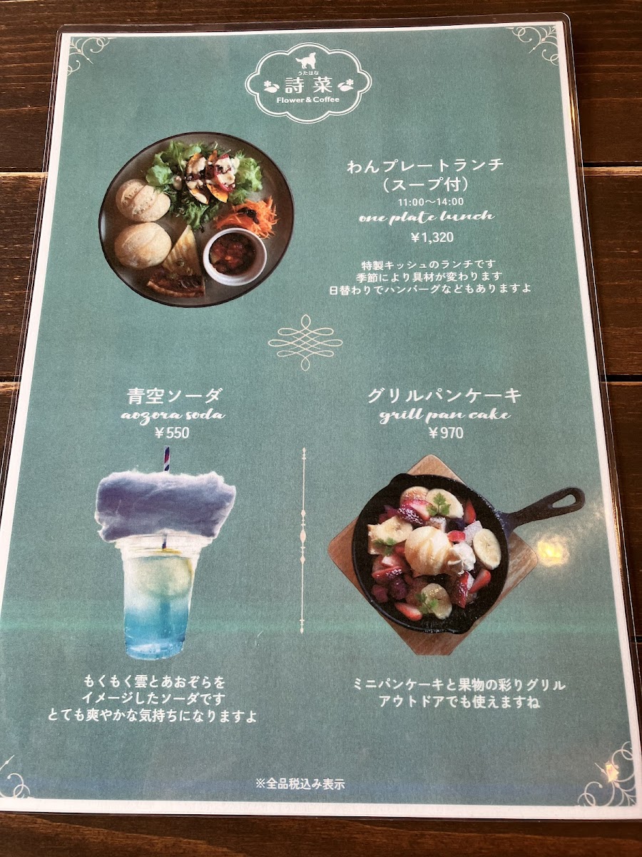 The menu is a delightful blend of flavors. Highlighted is the うたはなサンド, a savory sandwich filled with delectable prosciutto, encased in perfectly seasoned bread that many, like customer 中正憲, have praised for its taste. The café also offers a wonderful ワンプレートランチ with a variety of accompaniments including quiche, salad, and a rich, flavorful soup.
